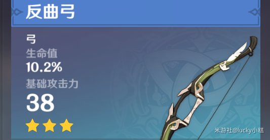 除此之外,奖励反曲弓很重要,唯一一把除了五星武器之外加生命的弓箭,而且加成不抵,平民夜兰神器。