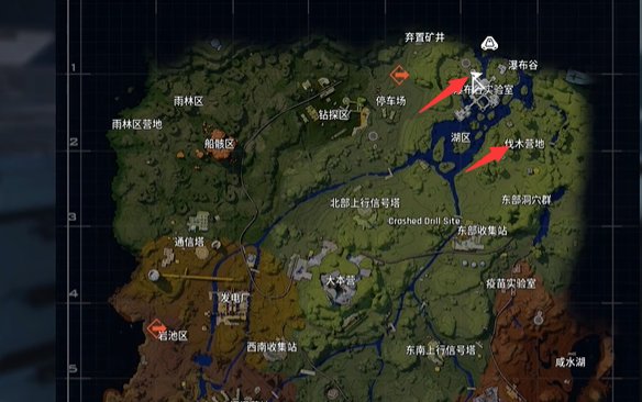 2、如果瀑布谷实验室没有刷新,那么就可以快速跑到瀑布谷实验室右下方的伐木营地搜寻。