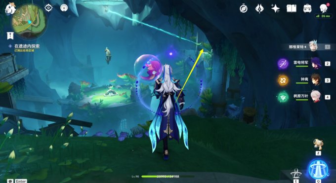 2、利用异色水母炸弹的能力,击碎洞口的石块,从洞口下潜进入。