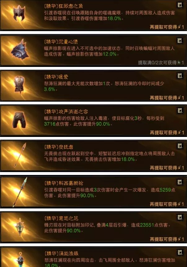 PVE流派推荐4维图2魔眼,PVP流派推荐2维图2魔眼2苦行,总之玩狂骑士2维图是必带的,因为核心技能头部精华狂邪者之角吃增益状态,蝠声掠影精华蝙蝠大军跟随不吃增益,但原技能吃增益状态的。魔眼在裤子蝙蝠带腐化,主手横扫千军带点燃都可以触发,4引路鬼搭配2个以上位移技能也是可以用的。