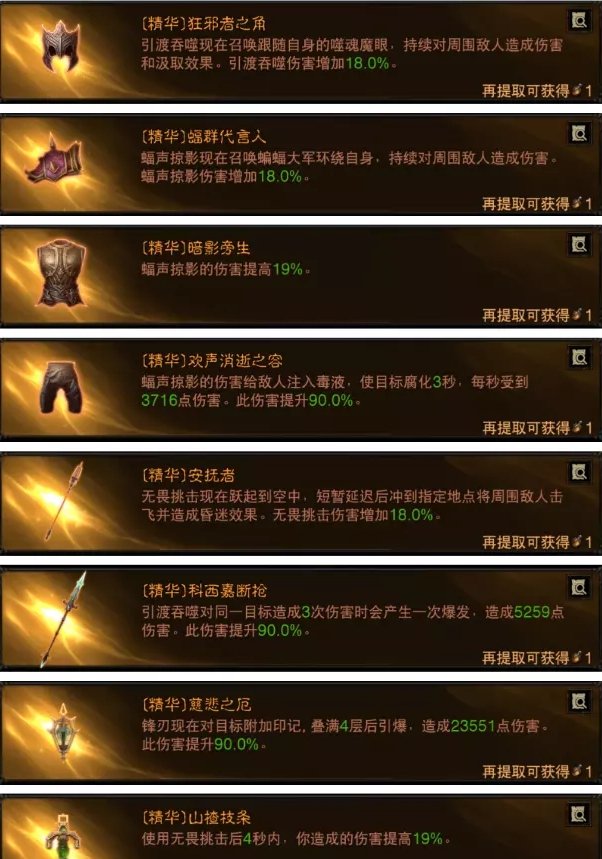 按主流BD使用率来推荐,衣服暗影傍身、护肩蝙蝠代言人、裤子欢声消逝之容觉醒增加蝠声掠影伤害,主手科西嘉断枪、虔敬猎手、头部狂邪者之角觉醒增加引渡吞噬伤害都是非常适合的。副手悬垂圣杯觉醒也可以增加锋刃的伤害,整体来说狂骑士大部分部位觉醒都可以完美适配。