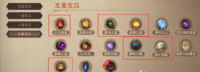 建议是斗志、腐蚀、能量、幽暗、星火5个输出宝石拉满,其次因为近战的缘故神恩是可以带的,然后偏向PVP一点拉满新宝石夜影之护和寒冰之心凑齐8个宝石即可!