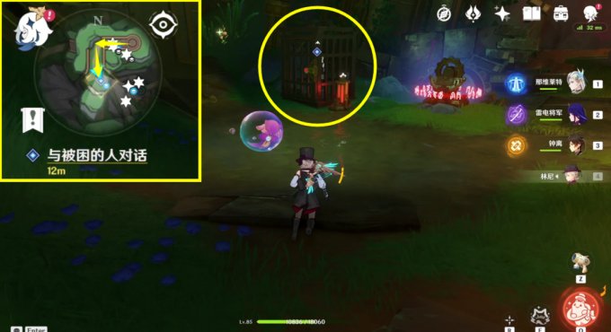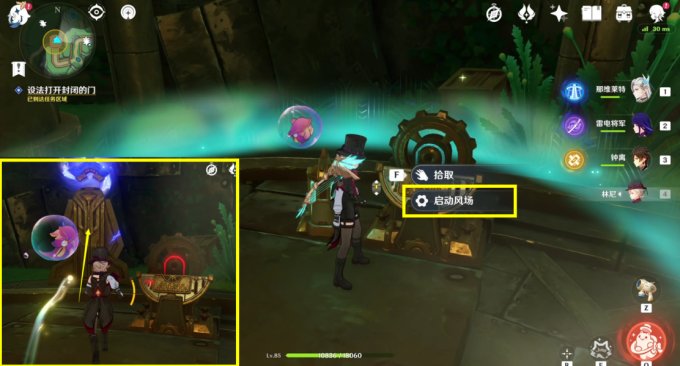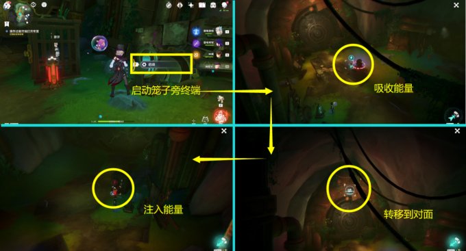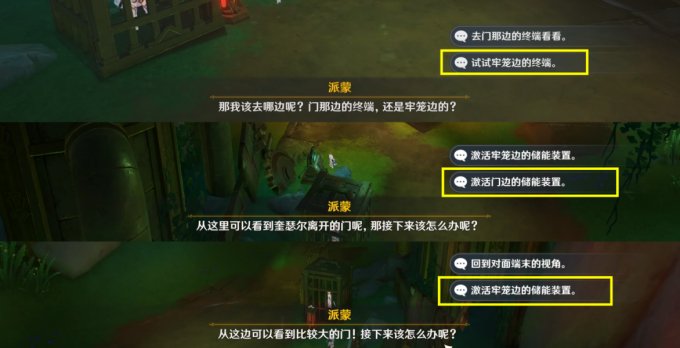 5、对话结束后,指导派蒙将旅行者就出来。依次选择:【试试牢笼边的终端】→【激活门边的储能装置】→【激活牢笼边的储能装置】
