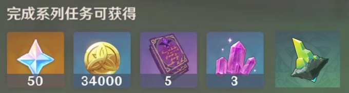 任务奖励:原石×50、神秘矿石、声望经验、摩拉、紫经验书、魔锻矿