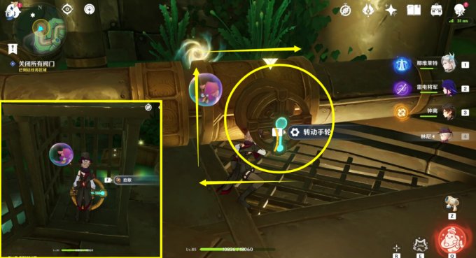 7(4)、最底部的漏气处,将一开始获得的移动储能装置放到牢笼旁边,取得手轮,装到管道上,然后将手轮旋转3次即可。