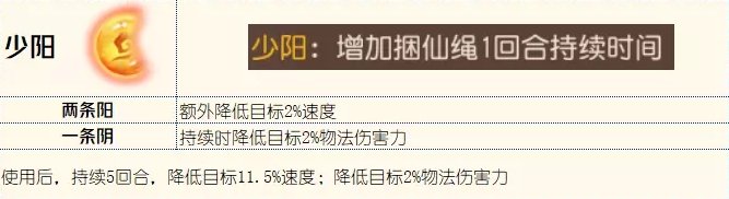 少阳增加一回合的持续时间,如果不考虑敌方的七宝的话,我更建议少阳,因为实际上增减速度我们都更愿意是持续效果,所以少阳增加1回合效果会降低一些回合内通过道具、技能等调整速度的压力