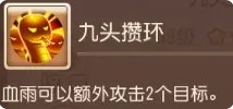 龙卷可额外打击两个目标,69级可以打击8个目标,70级以上打击9个目标,一般在运镖战斗中可以得到完整发挥,其他战斗中难以遇到如此数量的敌人,不过,九头虫为什么要攒环呢?,我查了一下。攒环是“围聚”的意思,意思是九个头聚在一起,我还以为是攒环,然后去套大鹅呢