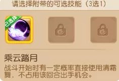 此技能是可选技能,给了三个可选项,五年啦~五年那,另外两个技能在哪呢呀,唯一的技能就是乘云踏月,一种概率出现的概率冰冻反制技能