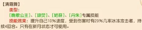 号外,号外!首次出现星级倒扣的技能!,清霜舞,导致了敌人有概率被冰冻,被冰冻以后晚歌就不淡定了,哪怕底血了也绝不输出,必须碎玉击,有人说碎玉击直接破冰对辅助伤害高,虽然这么说没错,但女神斗战型飘3,残血飘辅助照样有打击能力,还差碎冰那点伤害么?