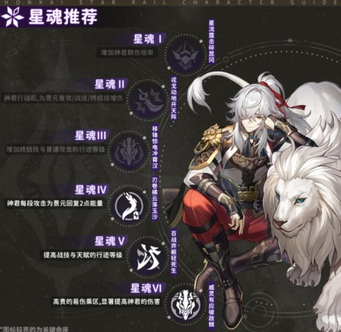 「第五星魂·百战弃躯轻死生」:提高转景元「战技」与「天赋」的行迹等级,至少能稳定提升神君10%的伤害,对景元整体伤害提升在7%以上。