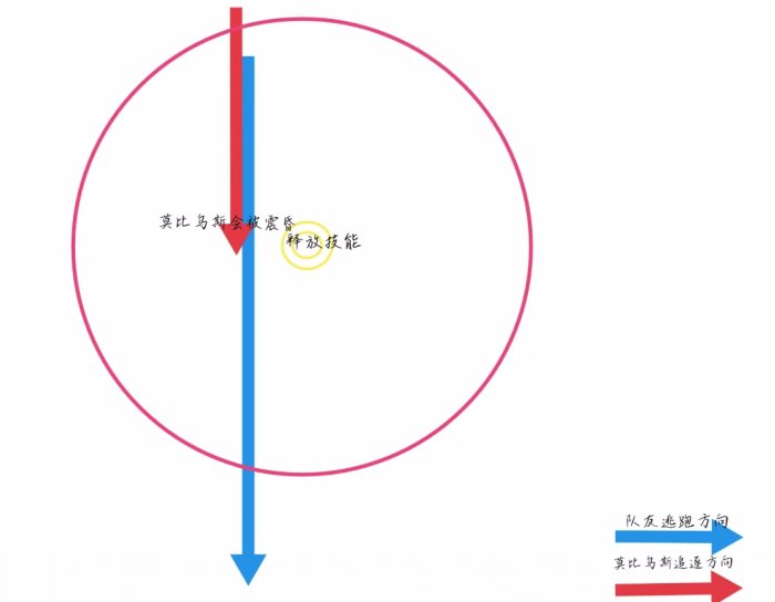当天狼星在传输数据时,看到莫比乌斯与自己近在咫尺(中间隔着必须障碍物,因为此技能释放时天狼星动作会改变),那么天狼星可以进行三段蓄力,对莫比乌斯进行持续减速,延长发现我们的时间,操作如下图