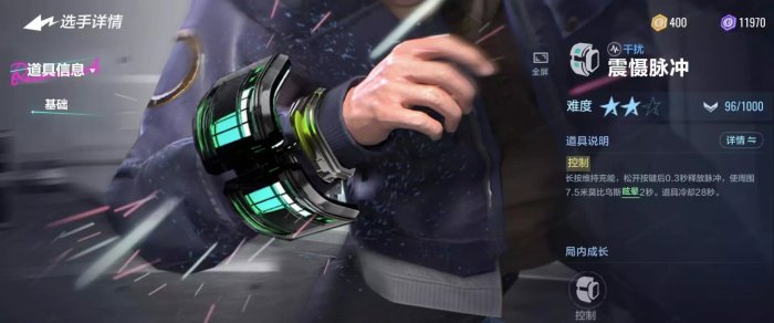 长按维持充能,松开按键后0.3秒释放脉冲,使周围7.5米莫比乌斯眩晕2秒。道具冷却28秒
