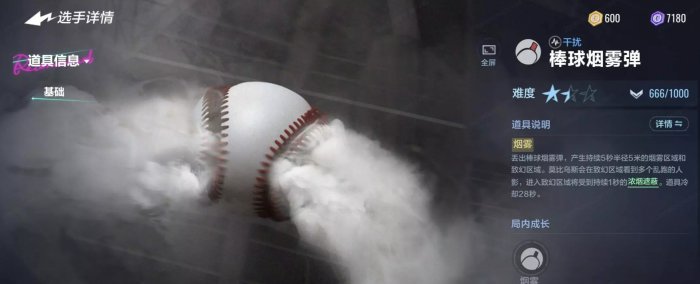 丢出棒球烟雾弹,产生持续5秒半径5米的烟雾区域和致幻区域。莫比乌斯会在致幻区域看到多个乱跑的人影,进入置换区域将受到持续1秒的浓烟遮蔽。道具冷却28秒