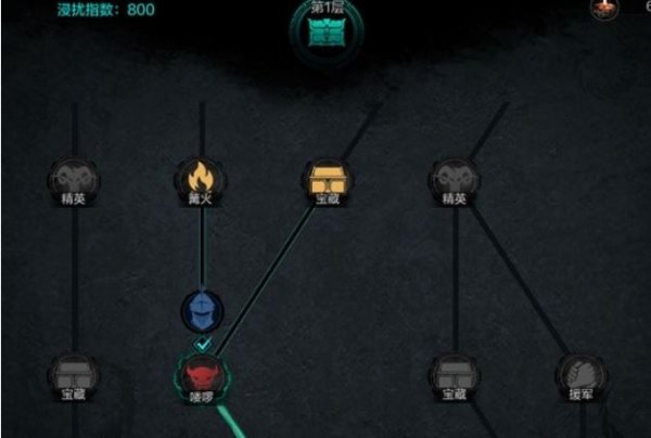 自动战斗阵容解决了,那么剩下就是选择路线的问题了,千万不要选择有精英怪的路线,我们既然速通就要避免更多的战斗,尽量休息宝藏商店之类的去选,最短的时间里完成地牢!