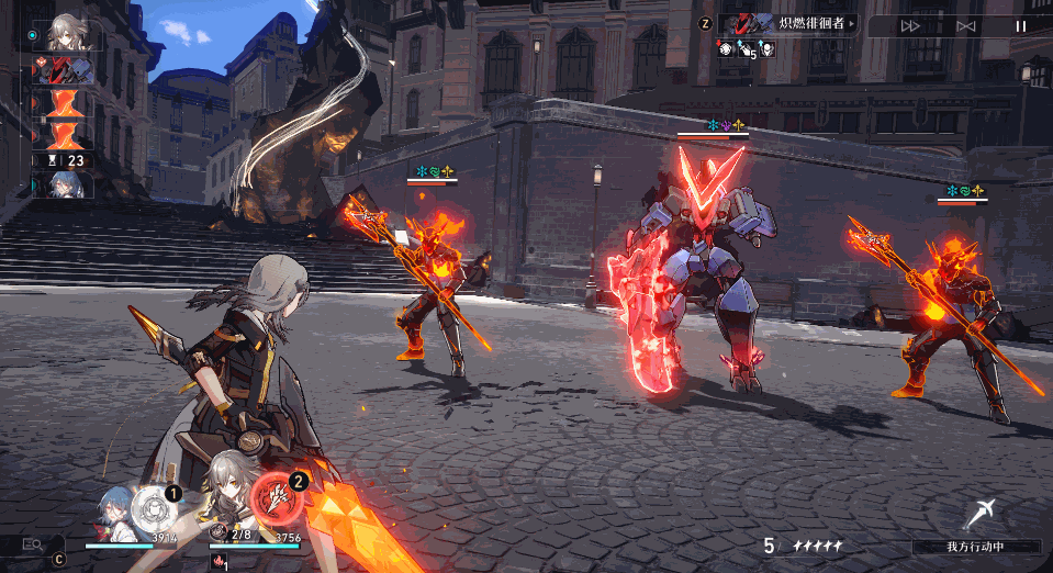 效果:对指定敌方单体造成等同于开拓者50%攻击力的火属性伤害并叠加1层【灼热意志】。