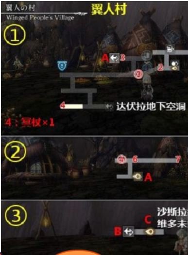1、路线:巴贝拉未知领域最深处(可从避雷村落传送)→达伏拉地下空洞→vs雷之精灵Peninsula Fulminu→翼人村→第3话END。
