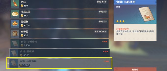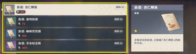 (4)食谱顺序按照游戏内烹饪界面顺序展示。大家如果缺了的话可以对着找。