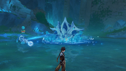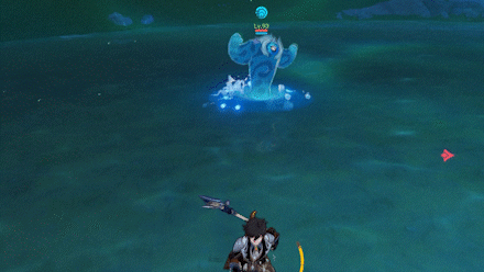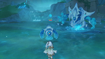 靠近时,半幻人拍击地面,造成半幻人100%攻击力的水元素伤害并造成击退。