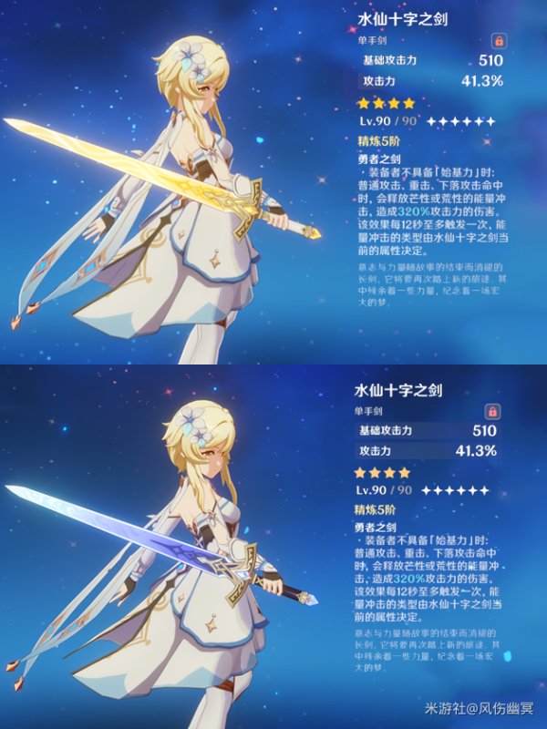 这把的玩法可以完全按照水仙之剑那样去玩,虽然没有跟水仙一样高额的特效攻击,但是这把有辅助增伤的机制,这两把剑都不逊色,都是可以直接拉满的好武器。