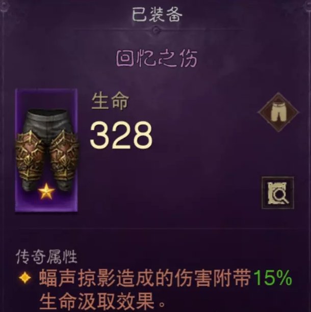 中期:有回忆之伤,蝙蝠群给吸血,或者引渡吞噬的各种精华两个部位有一件基本就不会掉血了,其他的随意,个人推荐副手用伤痕之泉,这个范围的飞刀还是很好用的。