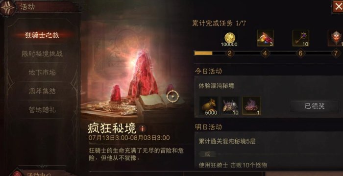 其实打下来是小编觉得最简单的一次混沌秘境,狂骑士的技能精华有些在PVE表现一般,但是在混沌秘境真的是神技。比如蝠声掠影和引渡吞噬,两个技能可以吸血,第一次打混沌秘境一次血都没有花钱买!
