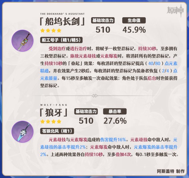 ①1.2版本活动获得,对于芙宁娜而言,算是一把“暴击武器”。武器技能提高元素战技的暴击率、伤害,在所有4星武器中推荐优先选择。