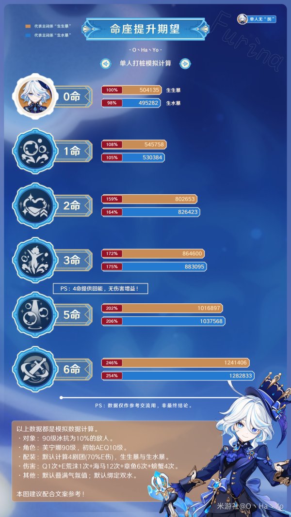 命座对于芙宁娜的伤害提升一览图,仅供参考。