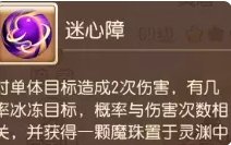 主要攻击手段为迷心障(单法攻击两次),以及一劫为魔(单法攻击3次以上),魔珠数量为0时,使用迷心障,灵渊中只要存在魔珠,均使用一劫为魔,绝对的自动打击法防最低目标