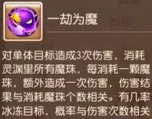 一劫为魔攻击时,消耗魔珠越多,单发伤害越高,是黄眉的核心技能,导致其伤害上限极高,3颗魔珠时进行一劫为魔,6连劈,一般可直接打死满血非法系助战