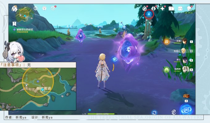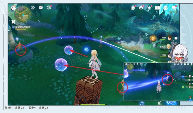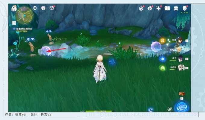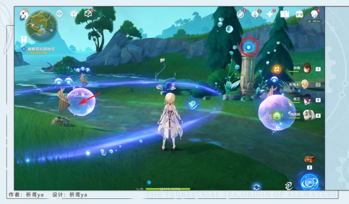6,再用aoe技能(如万叶E),同时击破水泡(使3个簧管同时激活)就能完成解密