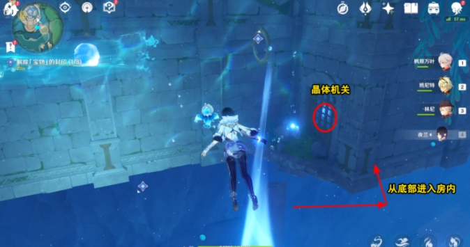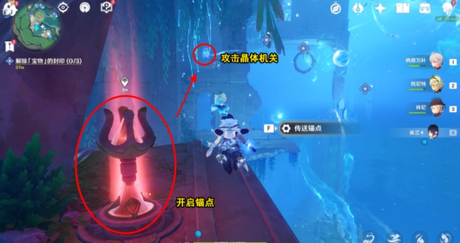 开启锚点,攻击北侧晶体机关,解开第一个封印