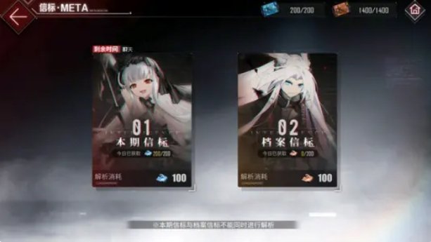玩家可通过解析「META信标数据」或「META档案信标数据」来开启当期或者往期MATEboss,每次解析「META信标数据」所需量为100点。