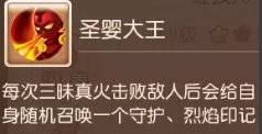攻击附带大量灼炎效果,降低敌人法防并持续扣血,三昧真火击败敌人给自身附加印记
