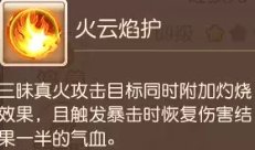 进阶后三昧真火暴击时,可以直接回复自身伤害结果50%的气血,再度赋予三昧真火一定的战术效果
