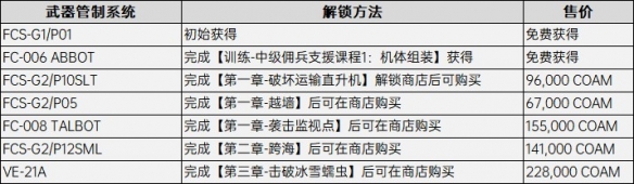 解锁方法:完成[第一 章-袭击监视点]后可在商店购买,售价155,000 COAM