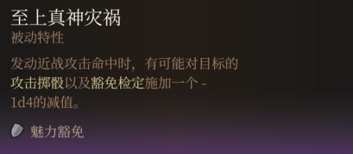这个更是神中神!第二章月出之塔一楼厨房隔壁的女商人卖,所有攻击自带优势,豁免承受劣势。其实比野蛮人的鲁莽攻击更好,鲁莽攻击是别人打你也优势,这个是法术豁免处于劣势,试问会用法术的敌人有多少呢?