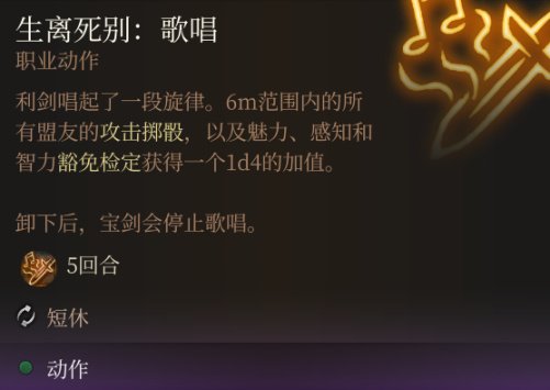 游侠等施法职业的克敌机先,使用后接下来两回合攻击带优势。如果是附赠的话就是神技了,可惜要消耗动作。可以在战斗前先套一个。而且我才发现只能对队友用,不能对自己用。