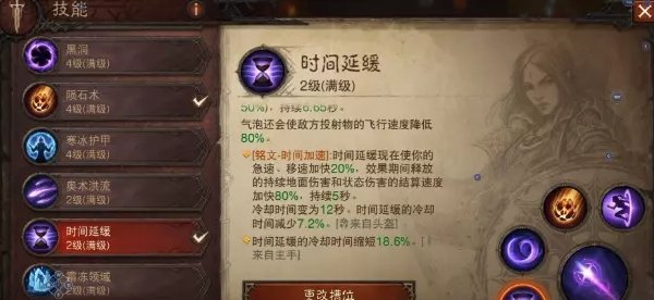 时间加速不用多数,可以让陨石术和奥术旋风的伤害发挥到极致,如果你带更多持续性伤害宝石收益也是大幅度翻倍的。其次副手让这个玩法冷却时间减少,在PVE加上维图和增益词条可以做到无限开,在PVP里稍微有1.5秒的空档期,也基本全程覆盖了。
