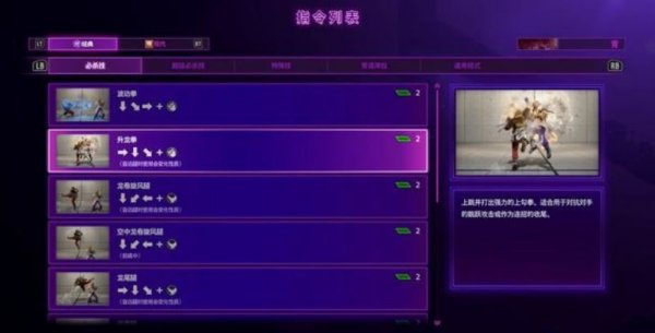 另外,无论是在锻炼场还是练习模式中,都可以随时调出菜单查看出招表与招式名称。