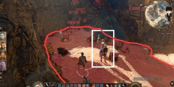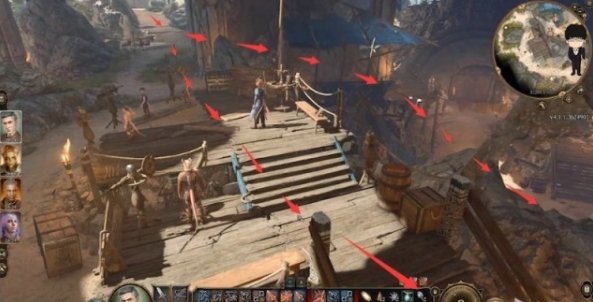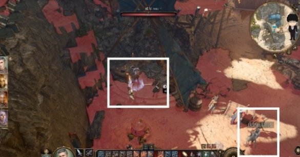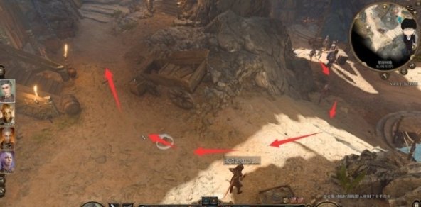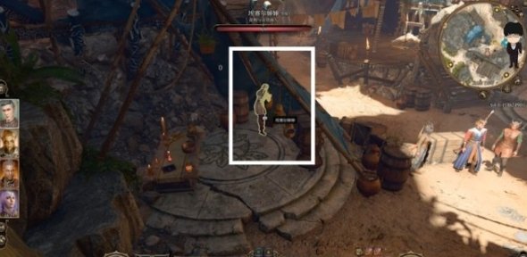 鬼婆这边之前劝说的三人跑到了这里,打开视野可以发现基本无从下手。这里需要将一名成员离队,与煮汤大婶对话来分散注意,其他人走到鬼婆背后待命