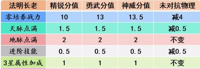 由于勇武和神威的法明只需要一次金刚,有道是一次金刚4回合享受,所以勇武和神威的法明比精锐直加3分,法明的金刚buff擅于对抗物理,如果敌人阵容里不小心没有物理,法明的战斗价值将根据培养情况,被被巨幅削减4至5分