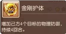 金刚buff会给首目标附加额外物理伤害,长老会自动寻找物伤面板最高的单位,进行金刚护体,提升该目标50点物伤