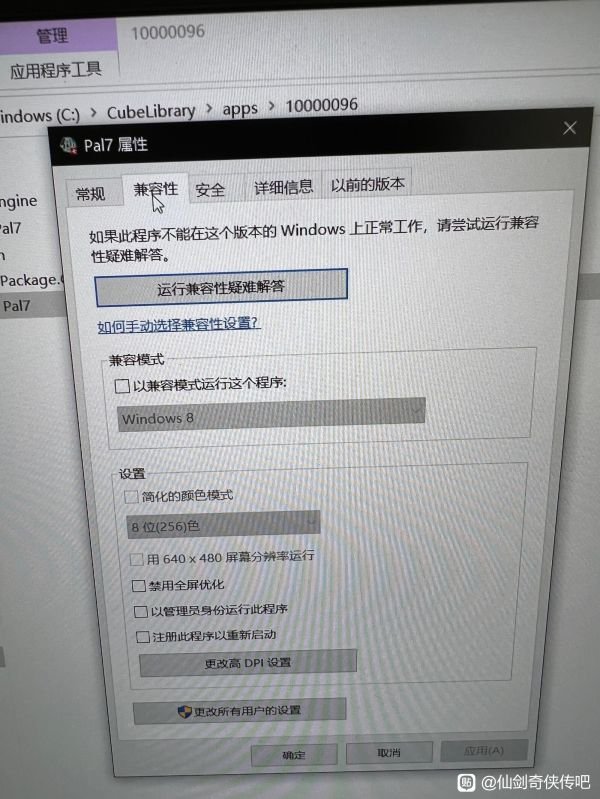 右键仙剑7-属性-打开文件目录,然后仙剑图标-属性-兼容性-最下面的更改高DPl设置-打开-最后在最下面的替代高DPl缩放行为-打勾-然后确定,一定要应用,然后重新打开游戏,全屏,分辨率和电脑一样了,就会发现一个新世界。