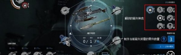 在痛苦之驽的的菜单还有制作箭矢的功能,只须拥有足够的陷阱零件,按Ctrl键就可以制作了。箭矢的种类换R键切换。