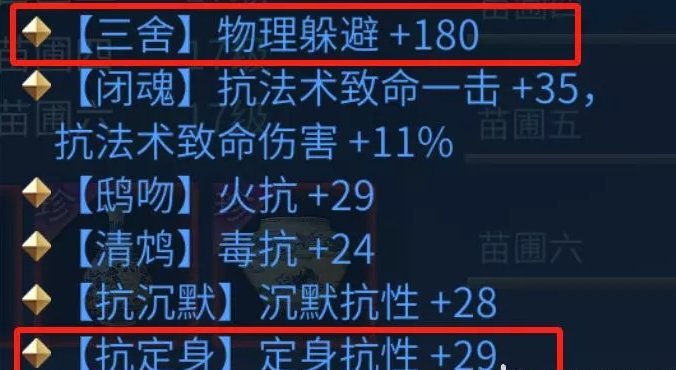 技能:气血、命中、强晕、定身抗、躲避(法术或者物理)