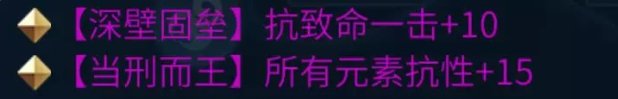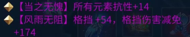 副手:所有元素抗性大幅或者格挡,这边分开做二套装备词条打造最好(一套元素抗、一套格挡)
