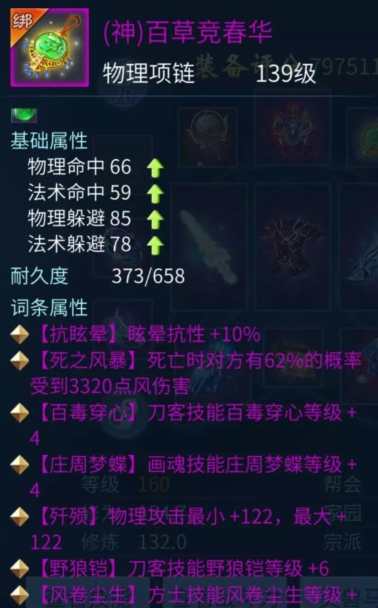法宝套装属性:力量、敏捷、根骨、躲避(躲避刀客选择)或命中