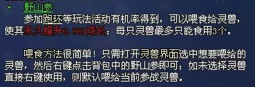 每个野山参加0.001成长,每个灵兽限吃3个。