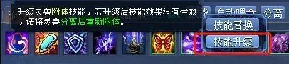 技能等级的提升再金陵柳琪琳处或者直接打开灵兽面板,需要什么道具和银两,以及人物经验都可以直接看到,需要升级,按照提示所需自行准备就可以了。