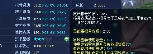 成长也是灵兽固定的,成长受灵韵蛋、野山参影响。